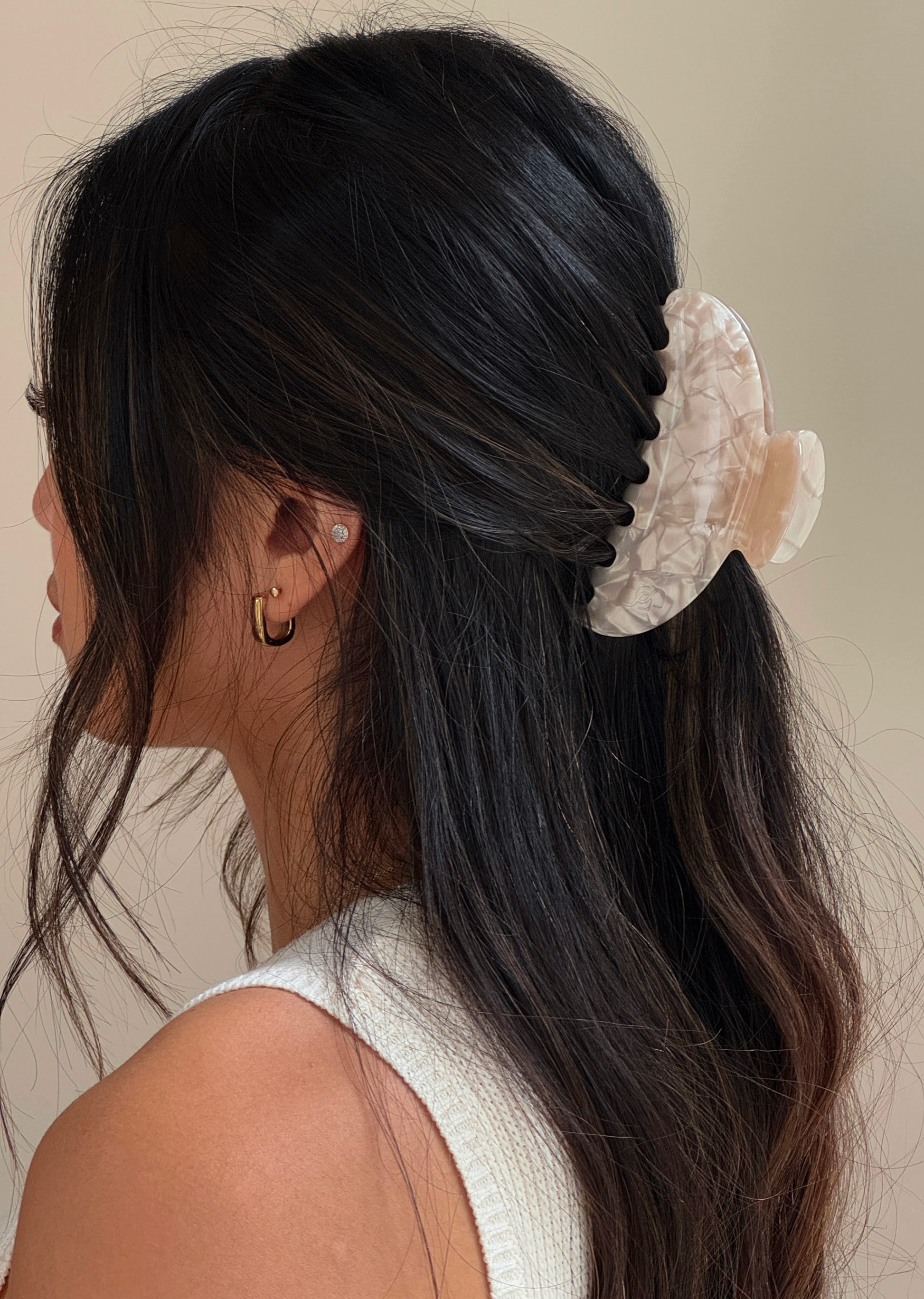 Almond Haze is your go-to neutral — a warm light taupe inspired by our bestselling Sienna bag in Latte. With a soft pearlescent sheen and a tone that complements everything from creams to charcoals, this clip was made to match your everyday wardrobe with ease.