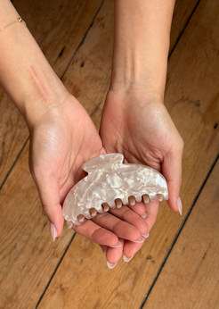 Crafted from durable, premium acetate cellulose, Almond Haze offers a secure hold without pulling or slipping — even on busy, hair-up-all-day kind of days.