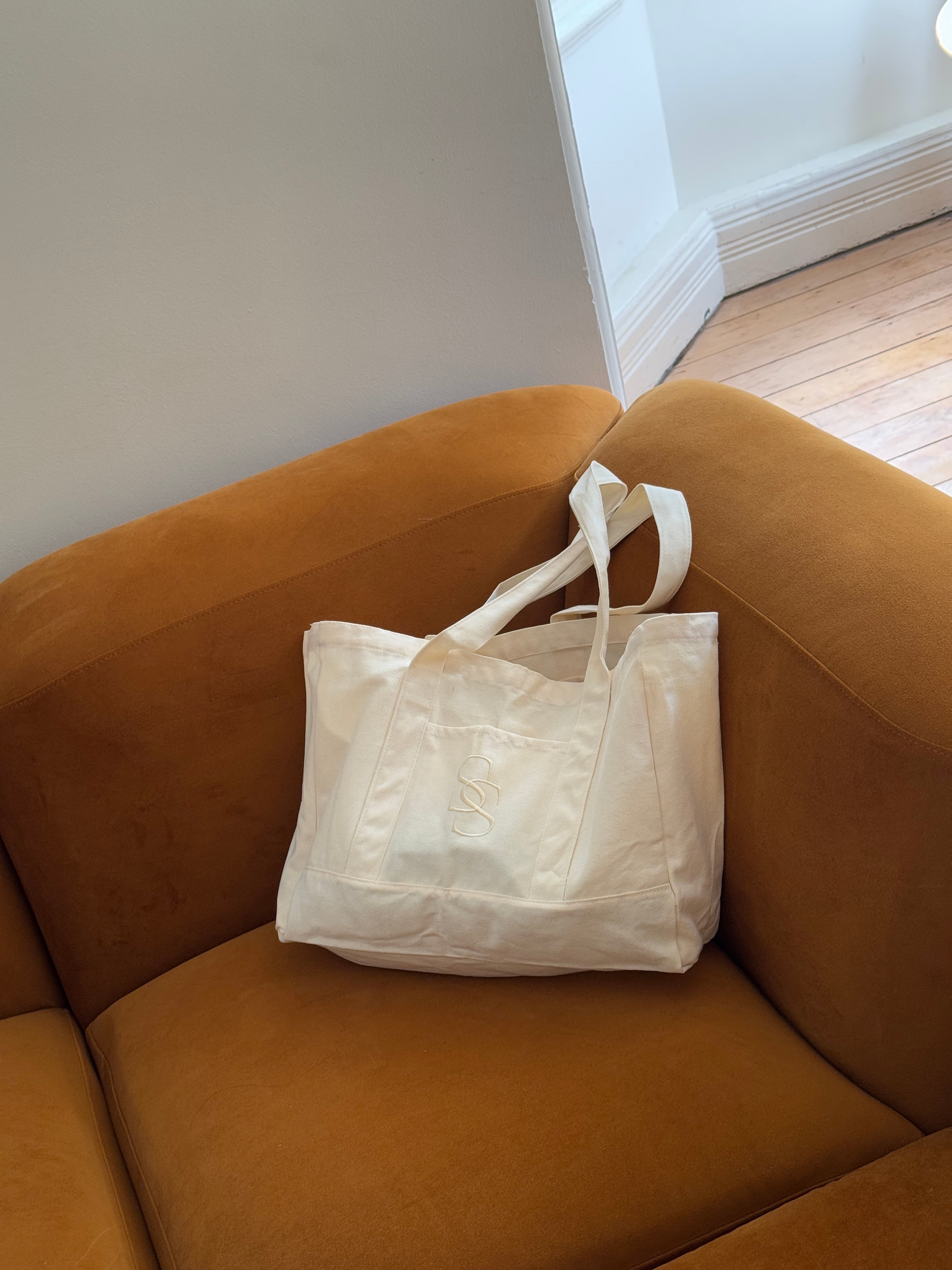 Soft, slouchy, aesthetic, and built for rough-and-tumble use — this is the tote you’ll throw in the car, take to work, pack for travel, bring to the gym, or use as a nappy bag. It’s designed to match everything while carrying your whole life.